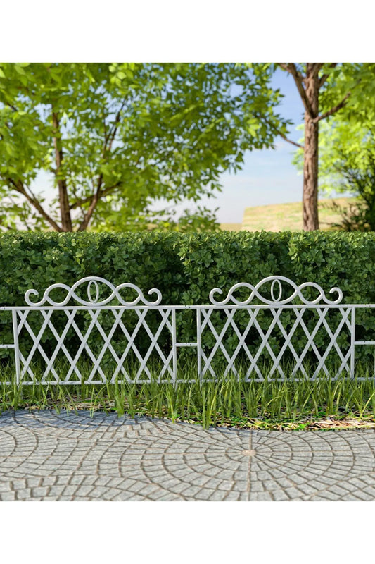 Dekoratif Ferforje Bahçe Çiti 8 Li (4 MT) Beyaz Plastik Çit Çiçek Çiti Peyzaj Koruma Panel Çit