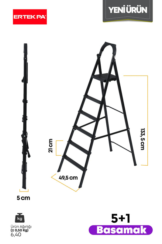 Süper Slim Siyah Merdiven 5 1 Metal Basamaklı