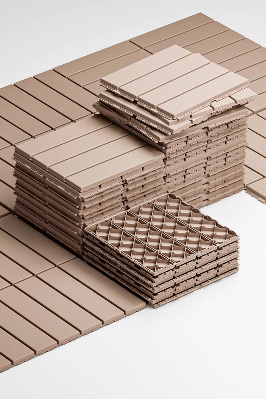 18'li Bahçe Balkon Teras Zemin Karosu 18 Adet Banyo Paspası Dış Mekan Karosu Kapiçino
