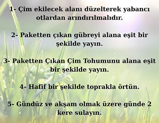 1 Haftada Çıkan Basmaya Dayanıklı 4 Mevsim Gübreli Çim Ekim Paketi 60 m2 Alan İçin | Çim Ekim Paketi