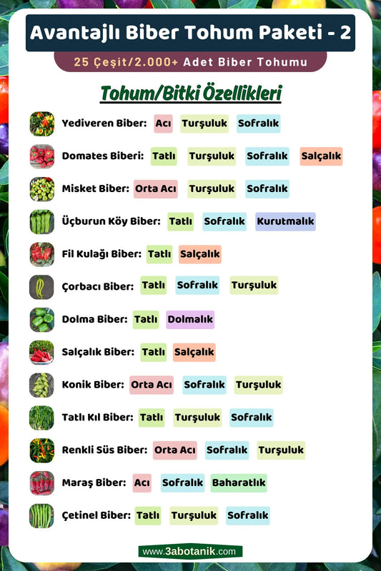 Avantajlı Biber Tohum Paketi-2, Toplam 25 Çeşit Biber Tohumu, Takribi 2.000 Adet Biber Tohumu