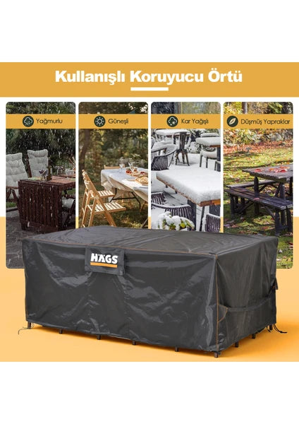 ✅ GELİŞMİŞ YÜKSEK PERFORMANSLI MATERYAL: Haegs Bahçe mobilyası örtüleri, su geçirmez ve Anti-UV özelliğine sahip geliştirilmiş 420D Oxford kumaştan yapılmıştır; Riptop deseni ve arka kaplaması sayesinde, yırtılmaya, çatlamaya ve solmaya karşı yüksek direnç gösterir. Bahçe mobilyalarınız örtünün altında güvende kalır